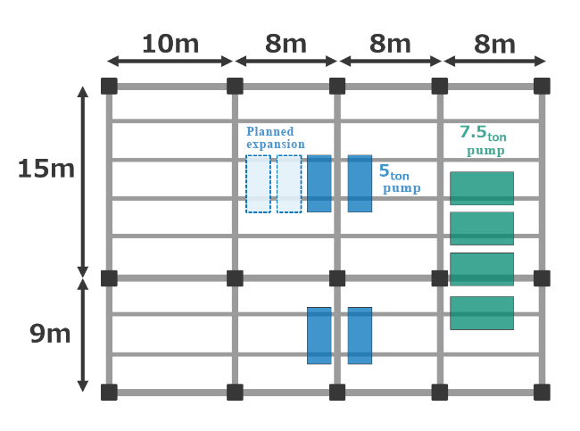 At a certain factory, vacuum pumps were installed on the second floor of a steel-frame structure, which caused the floor to shake significantly during operation, worsening the working environment. There were plans to add a new pump, and there were concerns about further vibration problems (Figure 1).