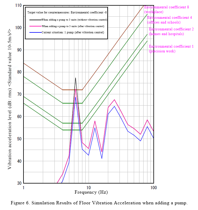 Simulation of the effect after the pumps are added confirms that the TMD vibration control measures will result in an environmental coefficient of about 8, which is a standard for workplaces (Figure 6).