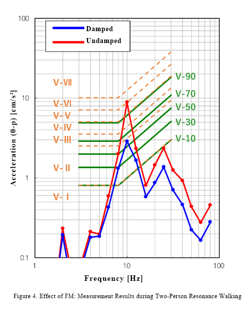 At the V-VI level, when the vibration was not controlled, more than 90% of the people felt the vibration and rated it as quite bothersome and quite uncomfortable. When vibration control was used, vibration was reduced to about 1/3, and the evaluation was not very bothersome and not very uncomfortable, a significant improvement (Figure 4).