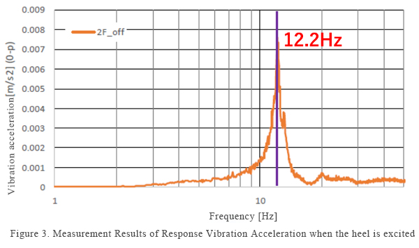 Figure 3: Measurement results of response vibration acceleration when heel excitation is applied.