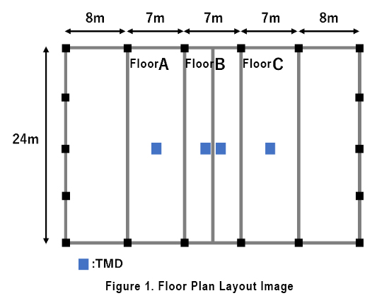An office building featured a long-span floor of approximately 24 m, and floor vibration during walking was a concern.