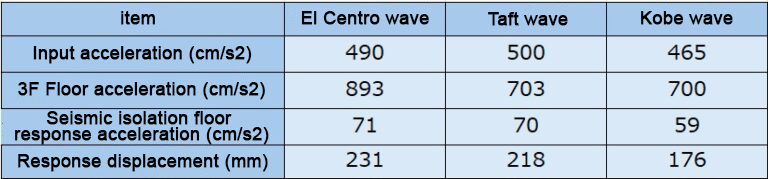 - The following are the results of the analysis with 50kine each of El Centro (NS), Taft (EW), and JMA Kobe (NS) waves as input for seismic isolation effects.