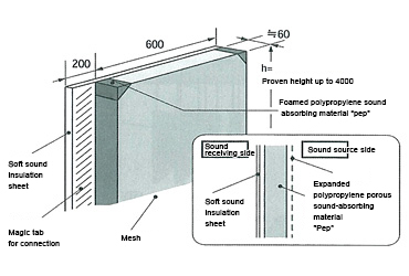 Noissover is an all-plastic sound-absorbing panel that is easy to install and move, and was developed to make it easy to install noise barriers for impulse and partial enclosures.