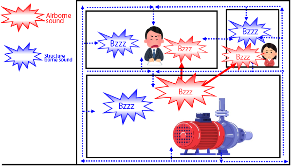 Figure 2 Example of air and solid sounds in a building (machine operating noise)