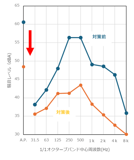 オクターブ分析を活用して騒音対策を行った実例を紹介します。